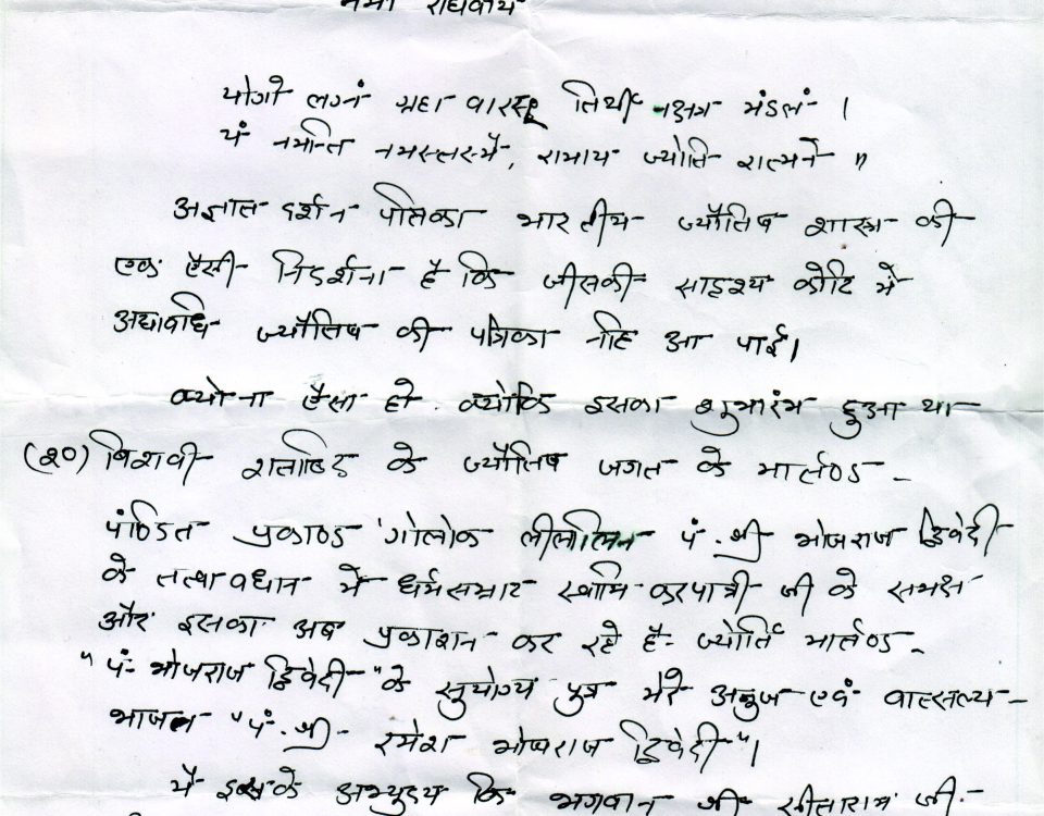 भारत सरकार द्वारा रजिस्टर्ड संस्था ‘अन्तर्राष्ट्रीय वास्तु ऐसोसियेशन’ के अध्यक्ष पं. रमेश भोजराज द्विवेदी ने बताया कि संस्था ज्योतिष के क्षेत्र में पिछले 20 से […]